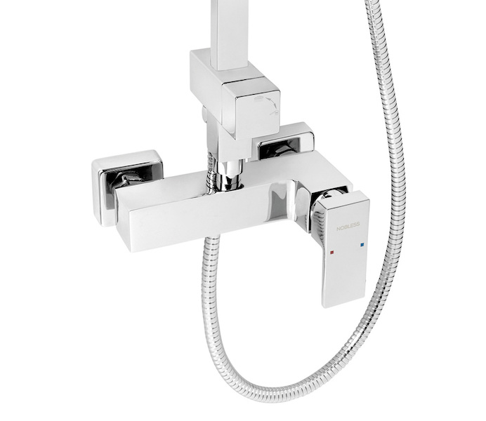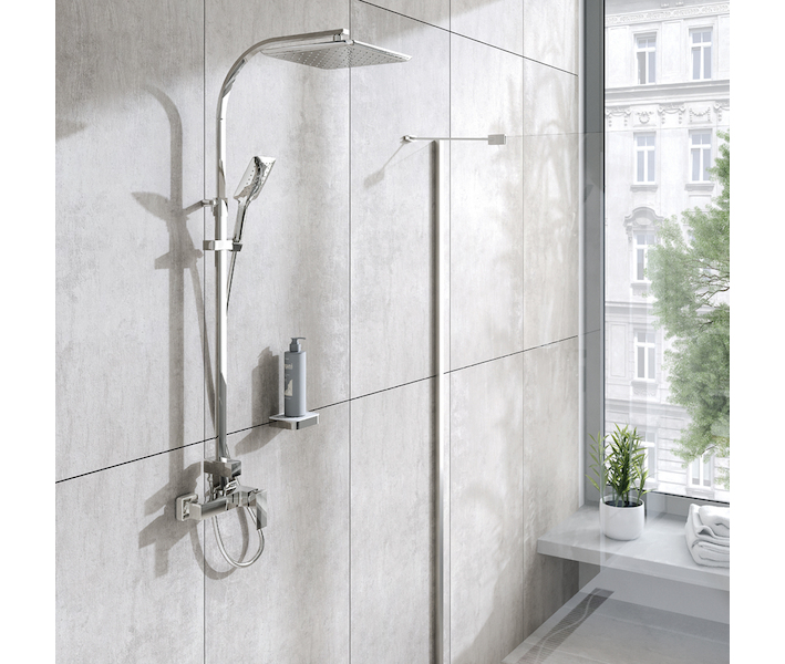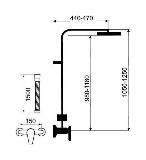 Kvalitní a odolná keramická kartuše 35 mm s prodlouženou zárukou 5 let. Prvotřídní chromové provedení. Set obsahuje nástěnnou sprchovou baterii s horním vývodem s roztečí 150 mm, hadici 150 cm, horní sprchu o rozměru 280x280 mm, 3 polohová ruční sprchu a posuvný jezdec s držákem ruční sprchy. Set je výškově nastavitelný od 1050 do 1250 mm. Umožňuje nastavit i vzdálenost vrchního úchytu od zdi v rozmezí od 50 do 80 mm.