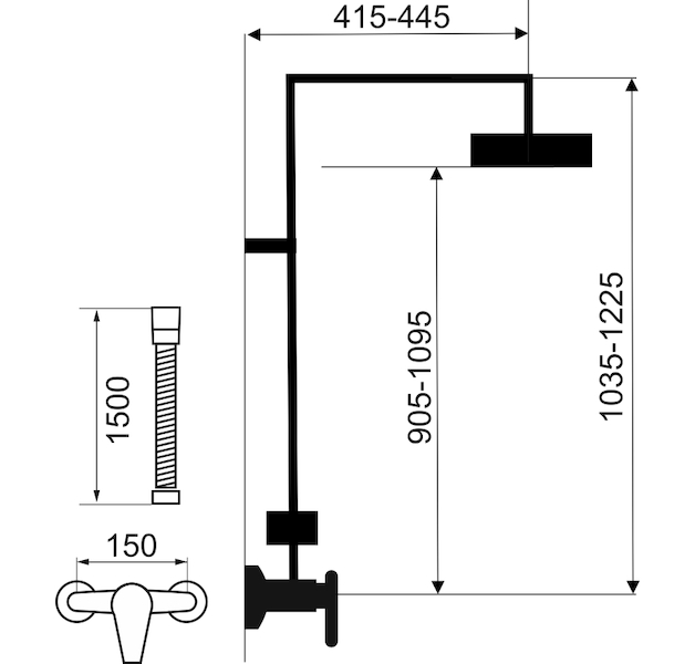 Prvotřídní chromové provedení. Set obsahuje nástěnnou termostatickou sprchovou baterii s horním vývodem a roztečí 150 mm s kvalitní a odolnou, termostatickou kartuší KEROX s s prodlouženou zárukou 7 let, hadici 150 cm, hlavovou sprchu s průměrem 230 mm, ruční sprchu a posuvný jezdec s držákem ruční sprchy. Set je výškově nastavitelný 1035 - 1235 mm. Umožňuje nastavit i odchýlení horního úchytu od stěny v rozmezí 50 - 80 mm.