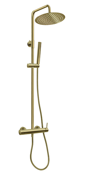 Sprchový set Ferro Ciriculus Brushed Gold s baterií s horním vývodem spojuje moderní design s vysokým komfortem. Jemně broušený Brushed Gold povrch dodává koupelně luxusní a nadčasový vzhled.
