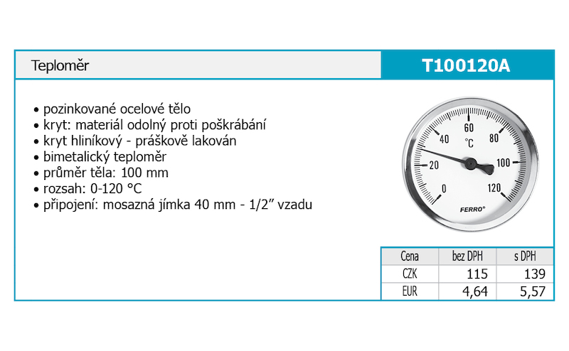 Novaservis Teploměr 100mm 1/2"AXIALNÍ 0-120°C T100120A