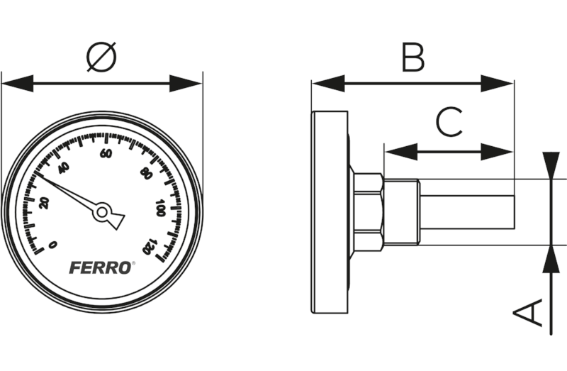 Novaservis Teploměr 63mm 1/2" AXIALNÍ 0-120°C T63120A