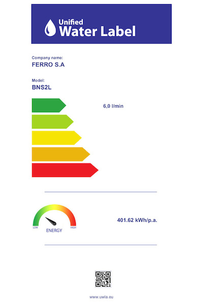 Umyvadlová baterie Ferro Nostris Chrom je vybavena novým typem úsporného aerátoru s průtokem jen 6 l/min., vyvinutým podle aktuálních standardů pro moderní stavební projekty a veřejné investice. Nese také certifikát UWLA, který potvrzuje šetrnost k vodě i energiím.