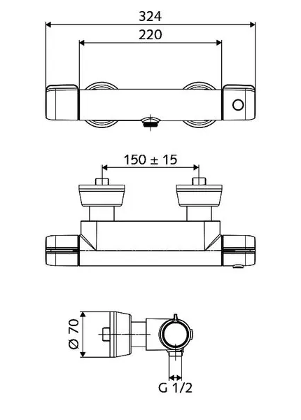 - připojení: 2 x DN 15 G 1/2 vnější závit