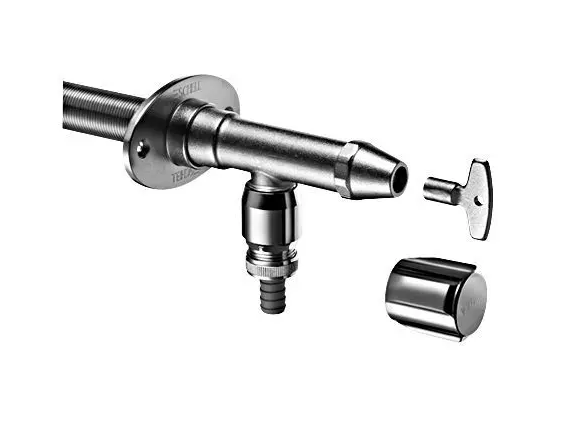 - instalační sada: tělo armatury s vrškem na nástrčný klíč i ovládací rukojeť, dlouhé vřeteno se zpětnou klapkou, nástěnná rozeta s vnitřním závitem, upevňovací materiál, montážní pomůcky (pro zkracování)