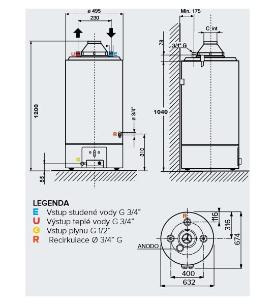 Stacionární ohřívač vody s odtahem spalin do komína, s nízkým obsahem NOx ve spalinách spňující požadavky norem ErP 26/09/2018.